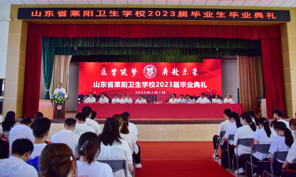 7月7日,山东省莱阳卫生学校举办2023届毕业生毕业典礼,党委副书记、院长申保忠应邀出席仪式。莱阳卫校党委书记、校长石少婷以及学校领导班子成员、职能科室负责人、班主任、教师代表及1087名毕业生参加典礼。