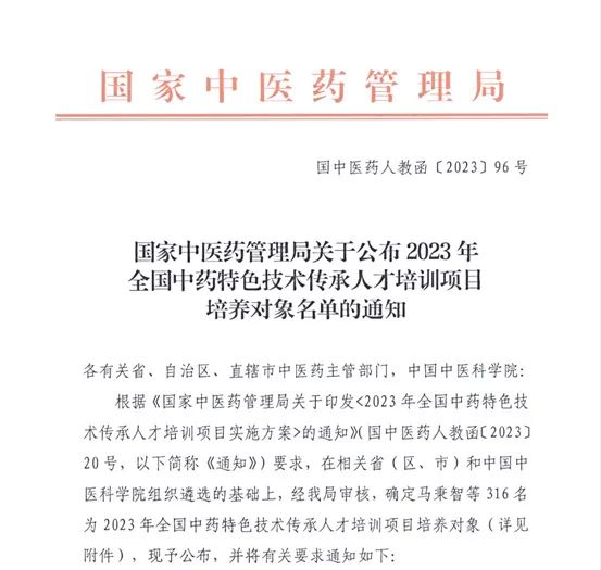 我校教师入选2023年全国中药特色技术传承人才培训项目