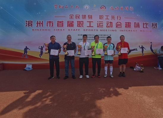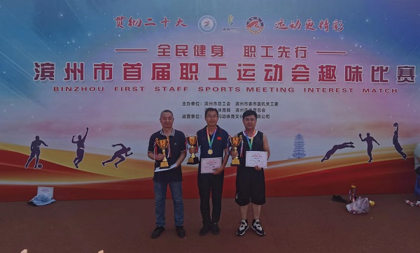 6月16日上午,“贯彻二十大 运动更精彩”—全民健身 职工先行—滨州市首届职工运动会趣味比赛在全民健身广场举行,我校张延锋、王春生两位老师分别在足球九宫格、飞镖两项比赛中获得冠军。