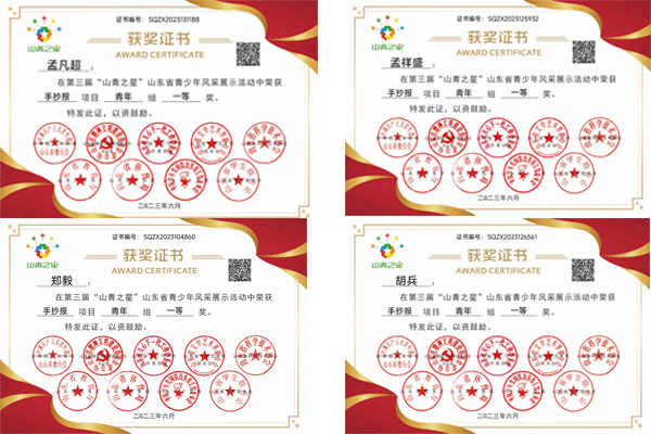 6月8日,山东省少年宫公布第三届“山青之星”决赛成绩,我校参赛选手喜获一等奖4项,二等奖3项,三等奖9项,优秀奖10项的优秀成绩。