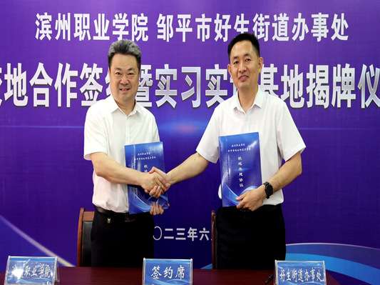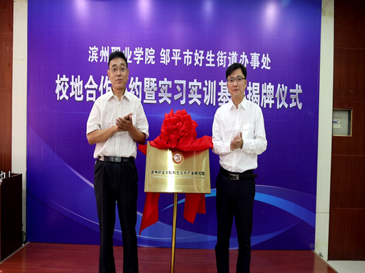 6月8日,我校与好生街道办事处举行校地合作签约暨实习实训基地揭牌仪式。党委委员、副院长宣永华,中共滨州市委党校(滨州行政学院)副校(院)长张燕,生物工程学院党总支书记王光杰一行及邹平市政协副主席、工商联主席田德民,街道党工委书记李凯,党工委副书记、办事处主任王理科等相关人员参加活动。