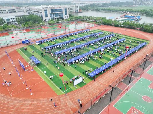 学校魁山体育场同步举办现场招聘会,本次活动共吸引来自省内外的400家用人单位参加,提供岗位1.3万余个。用人单位涵盖能源化工、机械制造、信息技术、生物医药、医护康养、建筑工程、教育培训等诸多行业领域,有魏桥创业集团、齐鲁制药集团、澳柯玛股份有限公司、鲁南制药集团、青岛京东方光电科技有限公司等国有企业、上市公司及行业重点企业100余家。学校毕业生共7000余人参加,投出简历2万余份,达成及就业意向近2000人次。