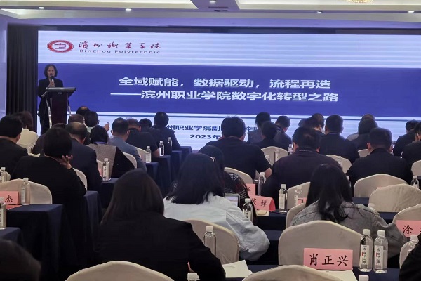 会议聚焦2023年职业教育重点工作,研讨国家在线精品课程建设经验、未来产业发展需求的高素质强技能人才的人才培养模式、教师教学能力提升路径、学校数字化建设方案等。全国高等院校计算机基础教育研究会长、中国传媒大学动画与数字艺术学院党委书记、教育部高等学校动画与数字媒体教指委秘书长黄心渊,全国电子商务职业教育教学指导委员会常务副主任、中国人民大学伦理学与道德建设研究中心职业伦理研究所所长陆春阳等多位专家现场做主题报告。在此次大会上,专委会常务理事、信息工程学院院长李莉代替副主任理事、滨州职业学院副院长李明月做了《全域赋能,数据驱动,流程再造——高职院校数字化转型之路》的主题报告,从实施专业智能改造升级工程,打造“产教同频、智数聚合”专业集群,赋能专业建设;实施课堂智慧改革提质工程,打造“境教融合、学评一体”智慧课堂新生态,赋能教学改革;实施师生数字素养培育工程,建立“标准引领、角色重塑”培育机制,赋能素养提升;实施数据治理流程再造工程,建设“系统全联通、数据全共享”校务应用平台,赋能学校治理四个方面展开,报告反响热烈。
