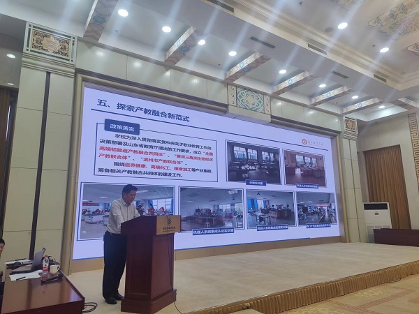 耿宏银代表我校作题为《以“四个共同”,促“五方联动”,探索产教融合新范式》主题报告,从四个方面分享了我校产教融合、科教融汇的具体做法:一是以共定人才培养目标、共建人才培养模式、共塑师资队伍、共建实训基地构建多元育人机制;二是“政行企军校”五方联动,汇集育人合力,放大叠加优势;三是推进混合所有制改革,共建混合所有制产业学院,促进产业链、创新链、教育链、人才链有效衔接;四是探索职业教育产教融合新范式,推动人才培养、创新创业和区域产业经济高质量发展。