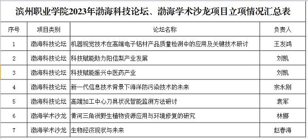 近日,滨州市科学技术协会公布了2023年度“渤海科技论坛”、“渤海学术沙龙”立项项目名单,我校获批五项“渤海科技论坛”项目、两项“渤海学术沙龙”项目,立项数量较往年取得新突破。