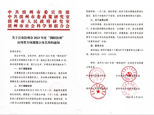 我校三项课题获批2023年度“调研滨州”应用类专项课题立项