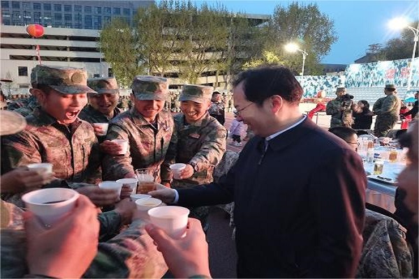 冷餐会期间,刘荩一与我校在此基地训练的2020级轮机工程技术专业军士生代表进行了短暂交流,肯定了大家的表现,勉励同学们苦练本领,以优异成绩为母校增光添彩。