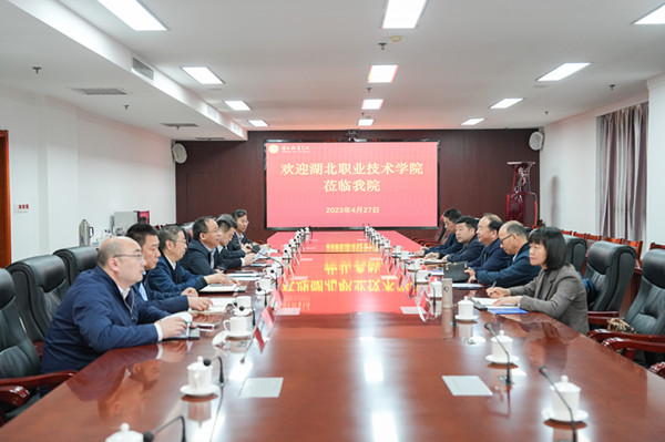 4月27日上午,湖北职业技术学院党委书记郭国文、党委委员副院长白梦清一行5人来访。党委副书记、院长申保忠和党委委员、副院长宣永华热情接待了客人一行。