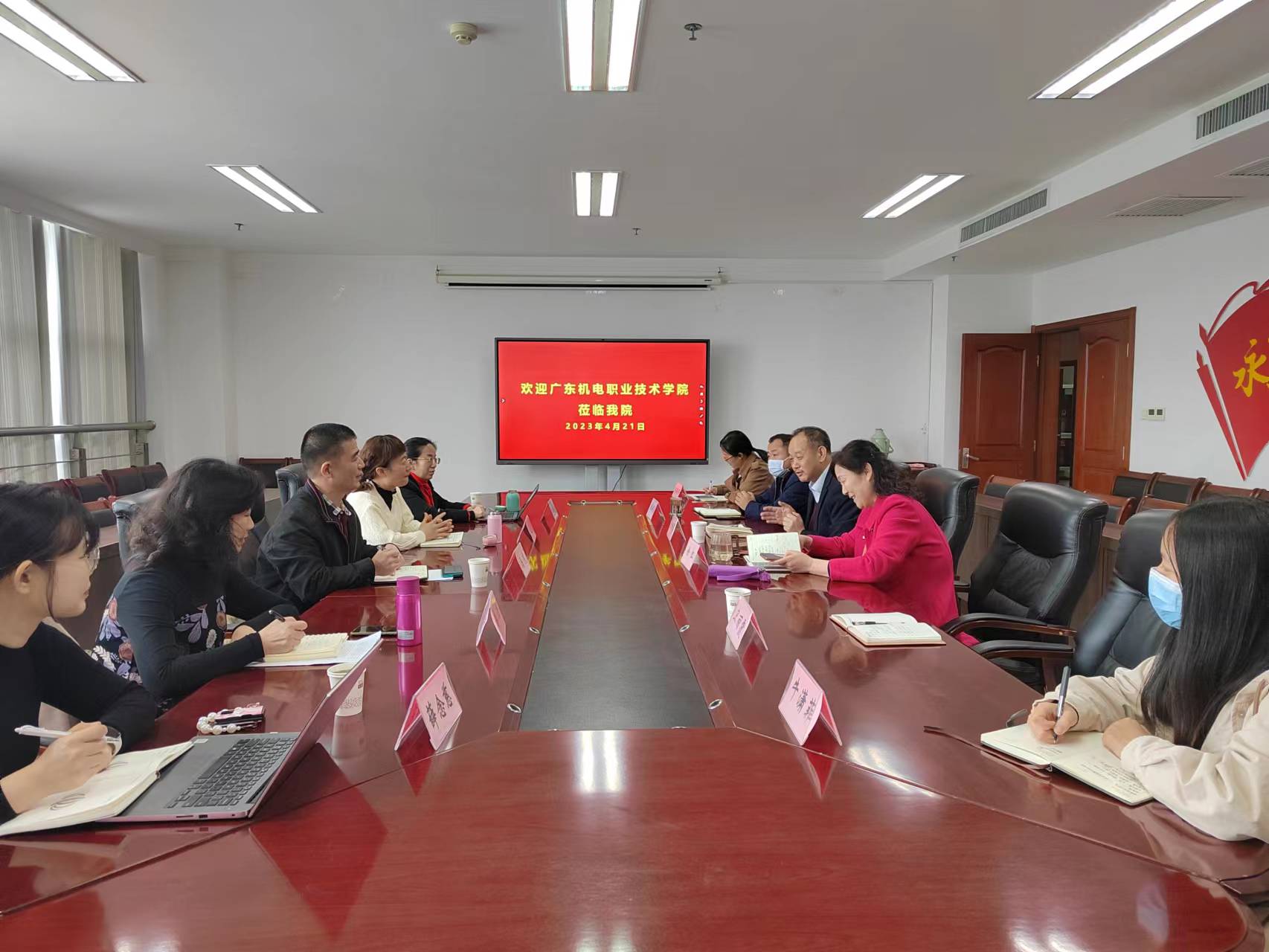 4月21日上午,广东机电职业技术学院公共管理学院党总支书记马庆、院长韦莉莉一行5人来我校对口交流。健康学院党总支书记徐红、院长仝丙昌及教学相关人员参加座谈交流活动。