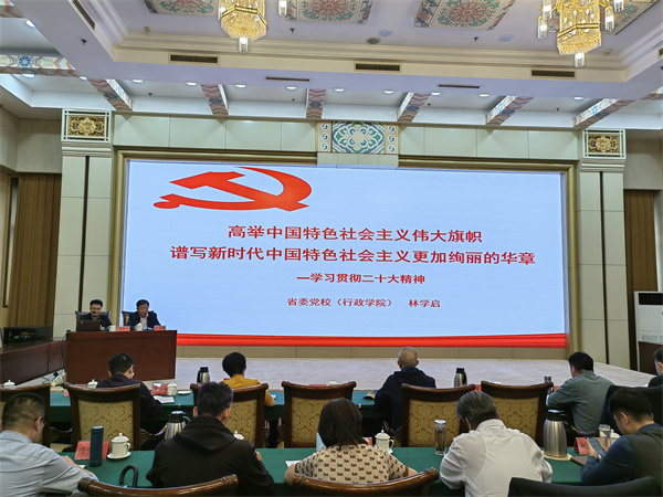 此次会议还听取了中共山东省委党校(山东行政学院)教育长、马克思主义学院院长林学启同志作了题为《高举中国特色社会主义伟大旗帜 谱写新时代中国特色社会主义更加绚丽的华章》的党的二十大精神辅导报告。