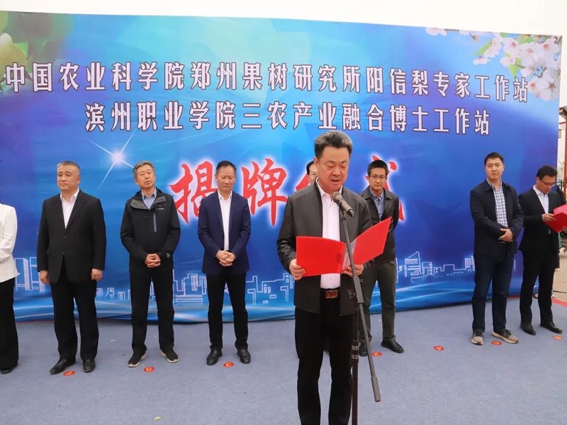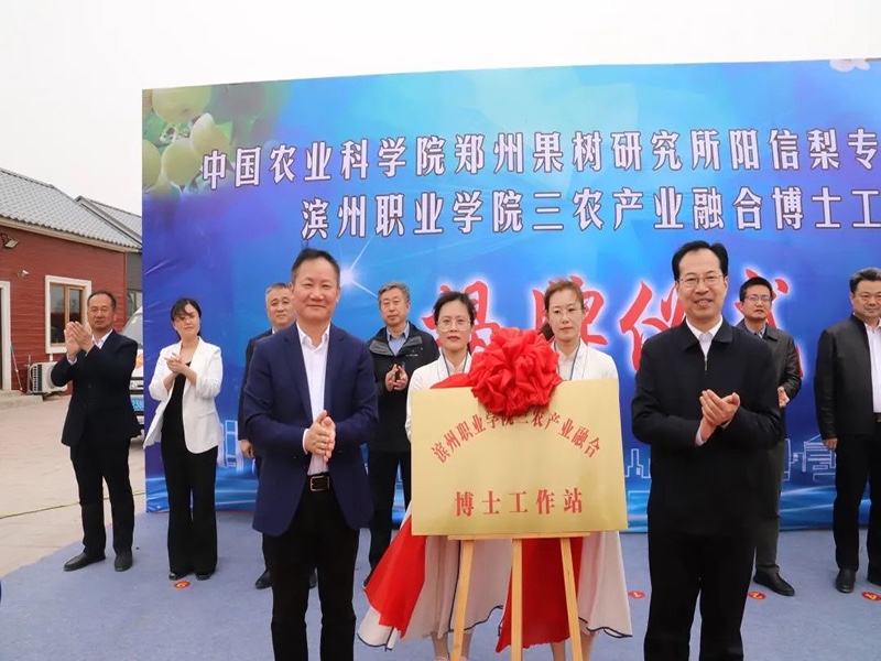 此次“滨州职业学院三农产业融合博士工作站’揭牌是我校响应乡村振兴战略实施的具体行动,加大了我校与基层一线的联系,在新技术引进与示范、三产融合发展合作研究、品牌建设和技术人才培养建设,特别是加大梨产业相关的科技成果转化方面合作,积极为阳信县三农产业的健康发展赋能。
