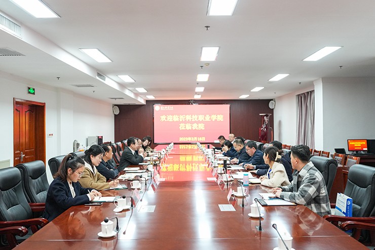 3月16日,临沂科技职业学院党委书记沈如茂一行到我校考察交流,党委书记刘荩一,党委副书记、院长申保忠在培训中心会议室热情接待到访客人。