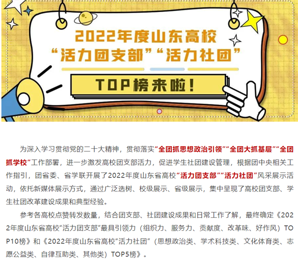 我校一支部一社团入选2022年度山东省高校“活力团支部”“活力社团”