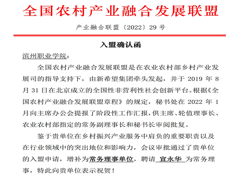近日,全国农村产业融合发展联盟常务理事会议召开。我校当选为常务理事单位,党委委员、副院长宣永华当选为常务理事。