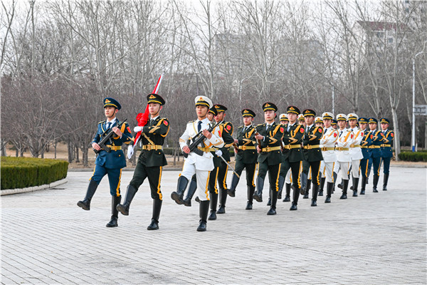 清晨7时许,升旗仪式正式开始,士官学院国旗护卫队步伐坚定、铿锵有力,护送国旗正步走向旗杆,人员全体肃立、致敬国旗。伴随着雄壮的《义勇军进行曲》,大家共同见证了五星红旗在滨职校园冉冉升起。