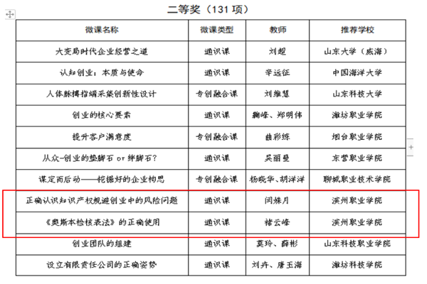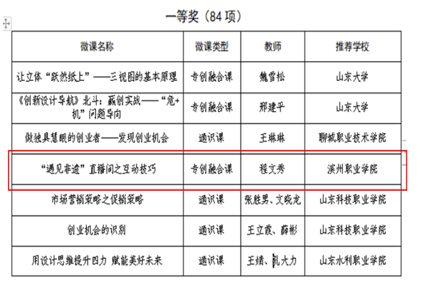 我院在山东省高校创新创业类精品微课比赛中取得优异成绩