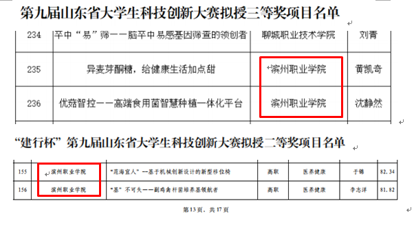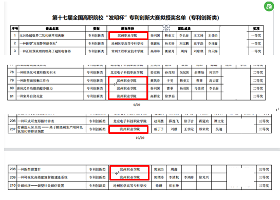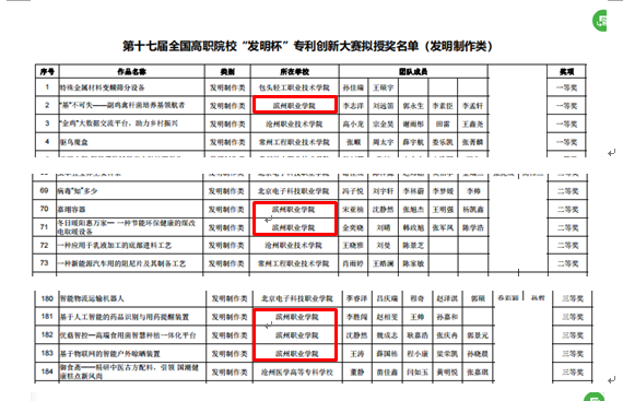 自2022年10月开始,按照全国第十七届“发明杯”大学生专利科创大赛和山东省第九届大学生科技创新大赛通知要求,在各二级学院的积极组织和配合下,我院参加“发明杯”大学生专利科创大赛项目和山东省大学生科技创新大赛项目获得多项大奖,其中,荣获全国“发明杯”大学生专利科创大赛一等奖2项、二等奖5项、三等奖6项;山东省大学生科技创新大赛二等奖2项、三等奖2两项,各类奖项共计17项。