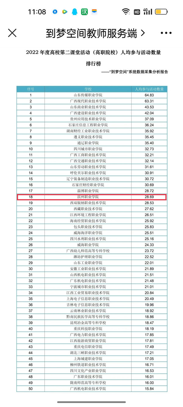 我院第二课堂五维度专项工作入选全国高职院校50强