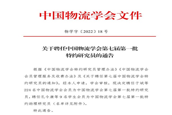 我院教师被评为中国物流学会特约研究员