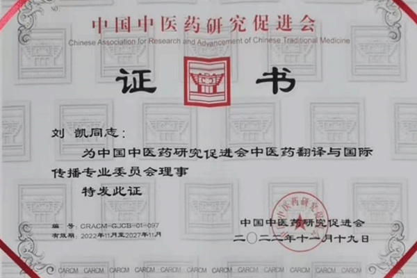 我院教师当选中医药研究促进会中医药翻译与国际传播委员会理事