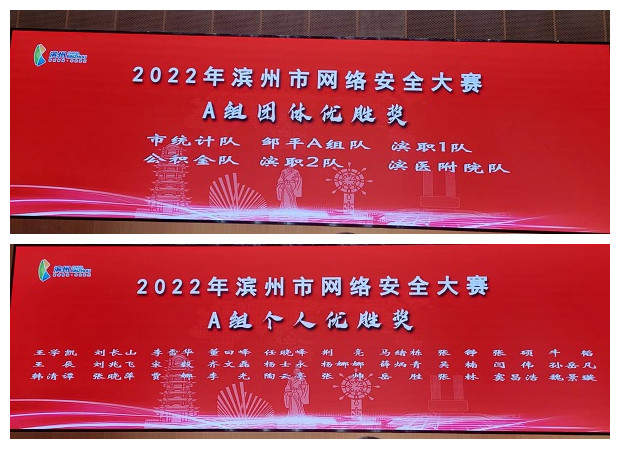 11月21日,由市委网信办、市总工会、市工业和信息化局、市公安局、市人力资源社会保障局、市国资委、市大数据局、市国家安全局等单位联合举办的首届滨州市“技能之星”职业技能大赛—2022年滨州市网络安全大赛落下帷幕。我院由现代教育技术中心和信息工程学院6人联合组队参加了比赛,2个参赛团队获得优胜奖,信息工程学院4人、现代教育技术中心1人获得优胜奖。