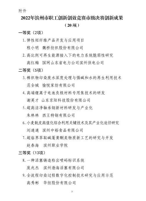 11月1日,市总工会公布2022年滨州市职工创新创效竞赛市级决赛创新成果名单,生物工程学院副院长赵春海申报的《超临界萃取碱蓬黄酮类物质新工艺的研究与开发》获二等奖,并奖励3000元。本次评选全市共20项,一等奖2项,二等奖5项,三等奖13项。(工会)
