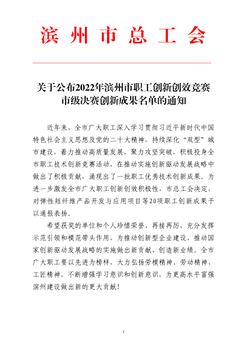 我院获2022年滨州市职工创新创效成果二等奖
