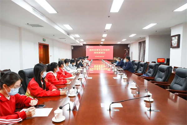 为贯彻落实习近平总书记在庆祝中国共产主义青年团成立100周年大会上的重要讲话精神,发掘优秀文学青年,培养文学新鲁军,10月14日,山东省作家协会党组书记、副主席姬德君,省作家协会《时代文学》编辑牛传琦到滨州职业学院主持召开青年文学创作座谈会。学院党委书记杨光军,市委宣传部副部长周卫华,市文联党组副书记、副主席窦志军,市文联党组成员、副主席、市作协主席刘庆祥及学院师生代表参加座谈会。