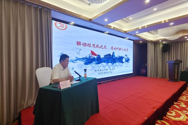8月17日下午,党委书记杨光军应邀为2022年度山东省“双高计划”引领“双师型”教师队伍建设工程课程思政建设专题培训班作报告,马克思主义学院院长刘传祥主持报告会,来自全省中高职院校的120名学员参加活动。