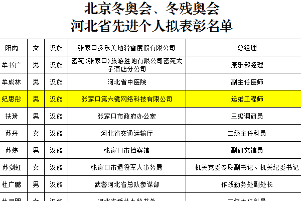 4月19日,河北省人民政府公布《关于表彰冬奥会、冬残奥会河北省先进集体和个人的决定》,其中,我院2014届毕业生纪思彤获评先进个人。