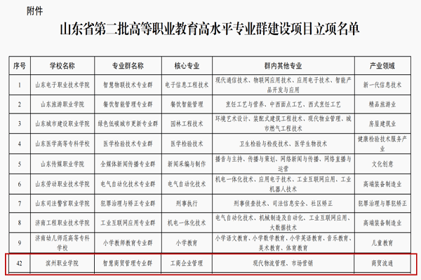 近日,山东省教育厅印发了《关于公布山东省第二批高等职业教育高水平专业群建设项目的通知》,我校智慧商贸管理专业群获批山东省第二批高等职业教育高水平专业群建设项目立项。