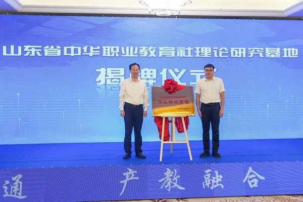 杨洪余与刘荩一共同为“山东省中华职业教育社理论研究基地”揭牌。未来基地将深入开展职业教育前沿性、实用性理论研究,为推进职业教育高质量发展提供智力支持,为整省推进职业教育现代化提供理论支撑与引领。