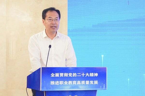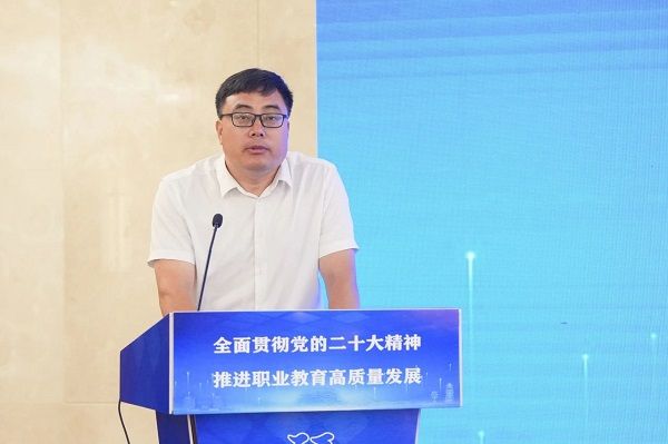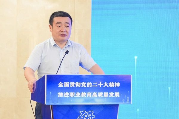滨州市委常委、组织部部长、统战部部长周鸿在致辞中指出,近年来滨州市委、市政府始终把职业教育放在优先发展的战略地位,作为部省共建国家职业教育创新发展高地试点城市,滨州坚持“产教大融合、科教大融汇、职教大融通”,探索出了以职业教育服务经济社会高质量发展的务实路径,成就了“产教融合”的生动实践、“智者智城”的职教底蕴和“职教名城”的城市风采。希望与会领导和专家全方面、多维度开展深度交流研讨,碰出更多思想火花,结出更多智慧硕果,奋力把习近平总书记对职业教育“大有可为”的殷切期待,转化为职教战线“大有作为”的生动实践。