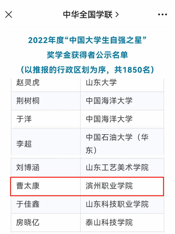 近日,由共青团中央、全国学联主办的2022年度“中国大学生自强之星”推报工作结果揭晓,经学校推荐、省级初评、全国评审等环节,我校国旗护卫队社团原团长、2020级石油化工技术(空军士官)3 班曹太康同学光荣上榜并获奖学金,这也是我院连续第3年获此荣誉。