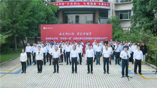 为充分激发广大师生爱党爱国情怀,强化爱校荣校意识,激励广大师生在新的学期开好头、起好步,助推我院高质量发展开创新业绩。8月28日,我校在太阳广场举行“奋进新征程 共筑中国梦”——滨州职业学院“不忘初心 礼敬国旗”新学期“开学第一课”主题教育升旗仪式。党委副书记、院长申保忠出席活动并讲话,党委副书记范克志,党委委员、滨州应用科技研究院院长胡洪涛,副院长李明月,党委委员、纪委书记吕海霞,党委委员、宣传部部长杨玉梅,党委委员、组织人事部部长李超出席活动,党委委员、副院长王进博主持仪式。