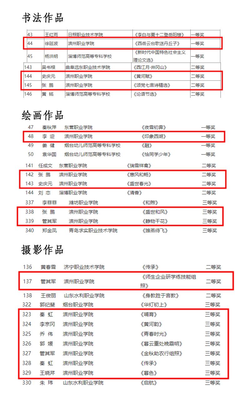 近日,山东省教育厅官网公示了“奋进新征程 建功新时代”主题书画摄影大赛获奖名单。我校教职工在本次大赛中获佳绩,共计获一等奖2个、二等奖5个、三等奖9个。