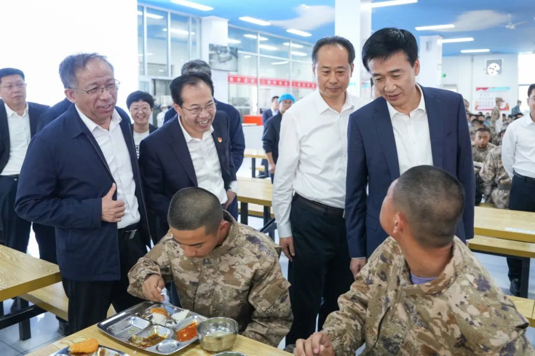 在学校士官生餐厅,李春田听取了学校食品安全有关工作汇报,查看了餐厅菜品和环境卫生,与用餐学生亲切交流,仔细询问同学们的就餐体验,并依次检查后厨加工操作、餐具清洗消毒、食材存储、食品留样、物品摆放等有关情况。