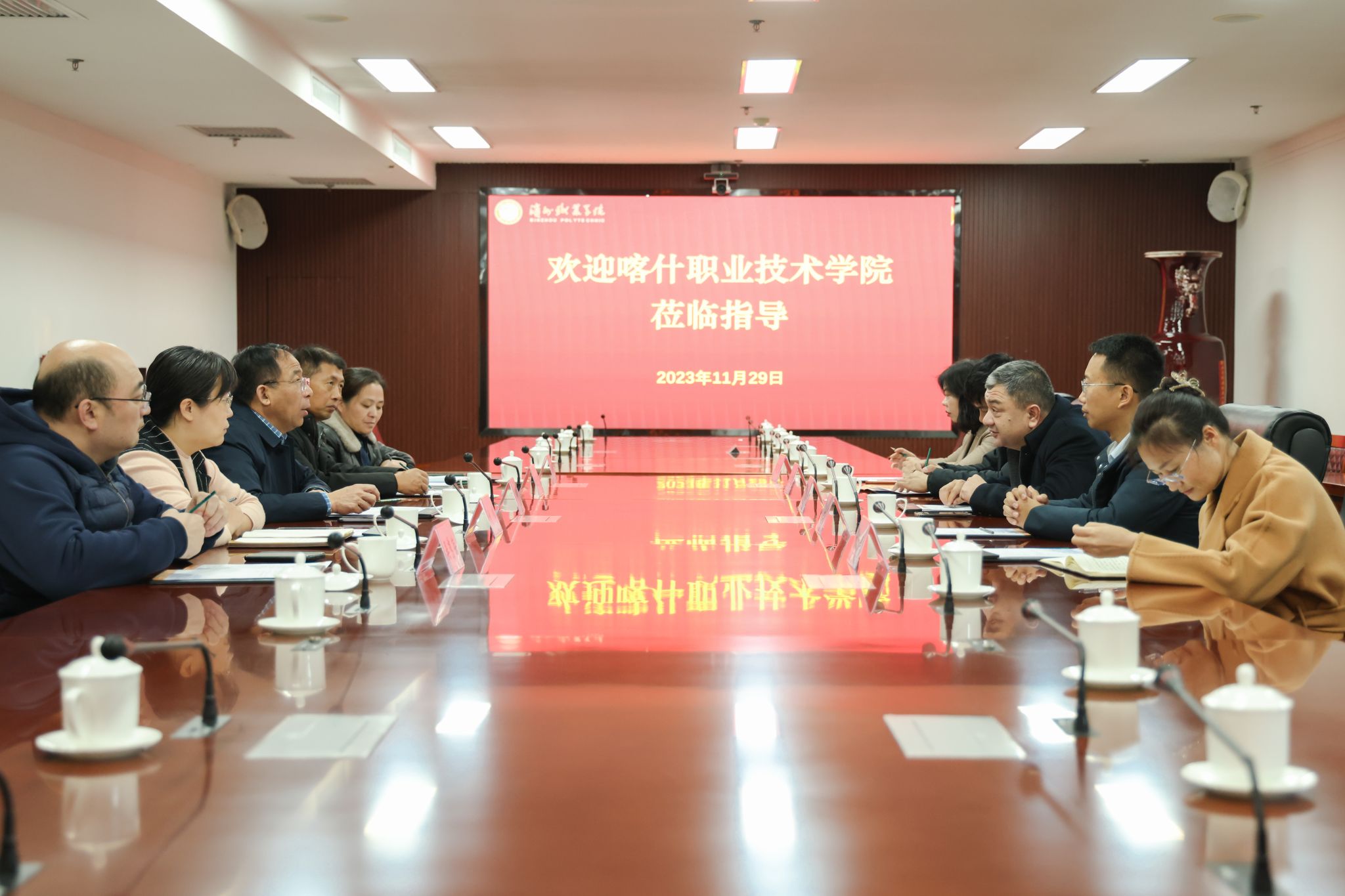 11月29日,喀什职业技术学院党委副书记、院长乃比江·亚生,党委委员、副院长张世亮等一行五人来我校考察交流并看望了在我校交流学习的喀什职业技术学院师生。党委副书记、院长申保忠热情接待了客人一行。