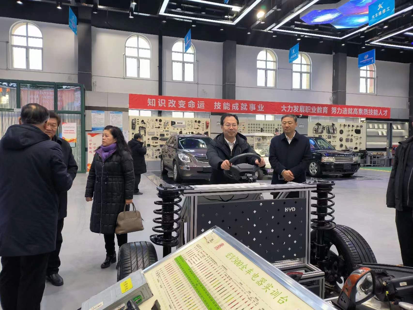 在兴安职业技术学院,刘荩一一行参观了学校新能源实训中心、消防救援产业学院、师范学院。该校党委书记斯钦都楞向刘荩一一行介绍了学校基本情况和办学成效,党委副书记云鹰,党委委员、副院长高爱军、王雪瑞,党委委员陈艳和我校党委委员、组织人事部部长李超参加座谈。双方就专业建设、师资队伍建设、深化校际合作、中蒙俄职业教育国际化平台搭建等方面进行了深入交流。