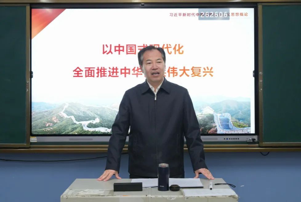 为进一步推动习近平新时代中国特色社会主义思想进教材进课堂进头脑,用党的创新理论铸魂育人,落实立德树人根本任务,12月21日下午,滨州职业学院党委书记刘荩一为马克思主义学院2023级党务工作专业学生,讲授了一堂题为“以中国式现代化全面推进中华民族伟大复兴”的思政课。