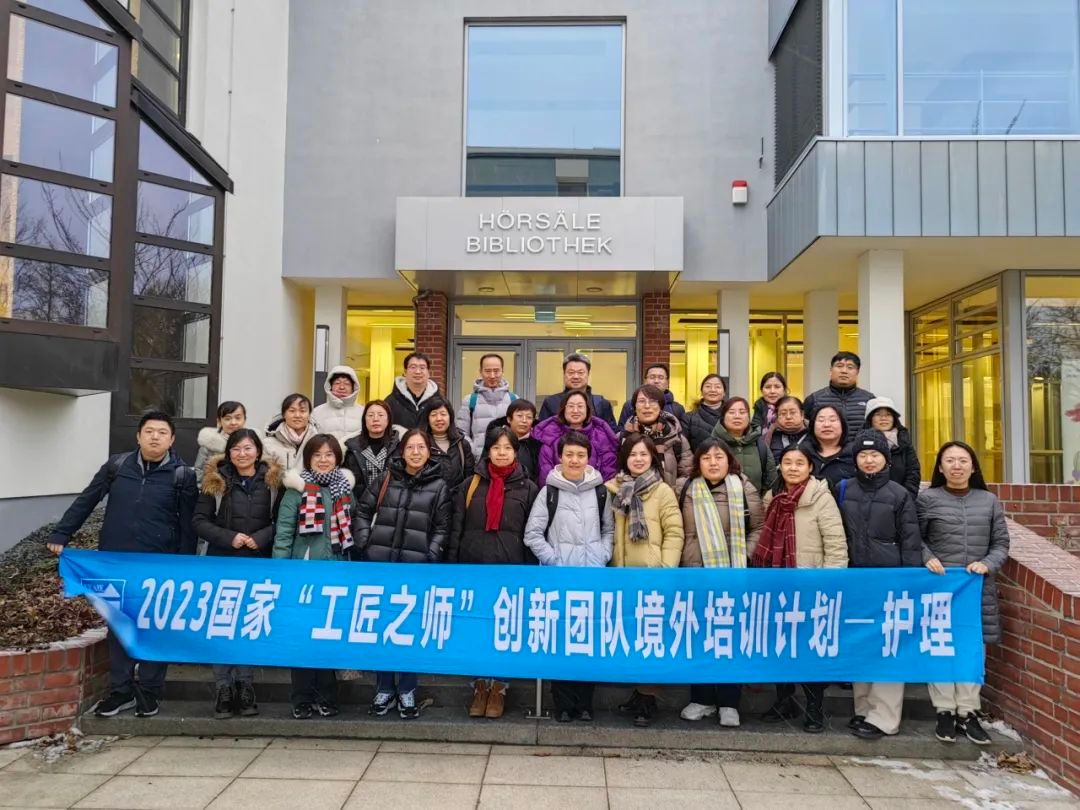 国家“工匠之师”境外培训项目是教育部为深化中德两国领导人达成的职业教育合作共识而举办的,委托中国教育国际交流协会组织实施。其中,护理专项由德国F+U萨克森公益教育集团具体负责。21团由我校、天津医学高等专科学校、聊城职业技术学院、中国教育国际交流协会共4个单位17名成员组成。