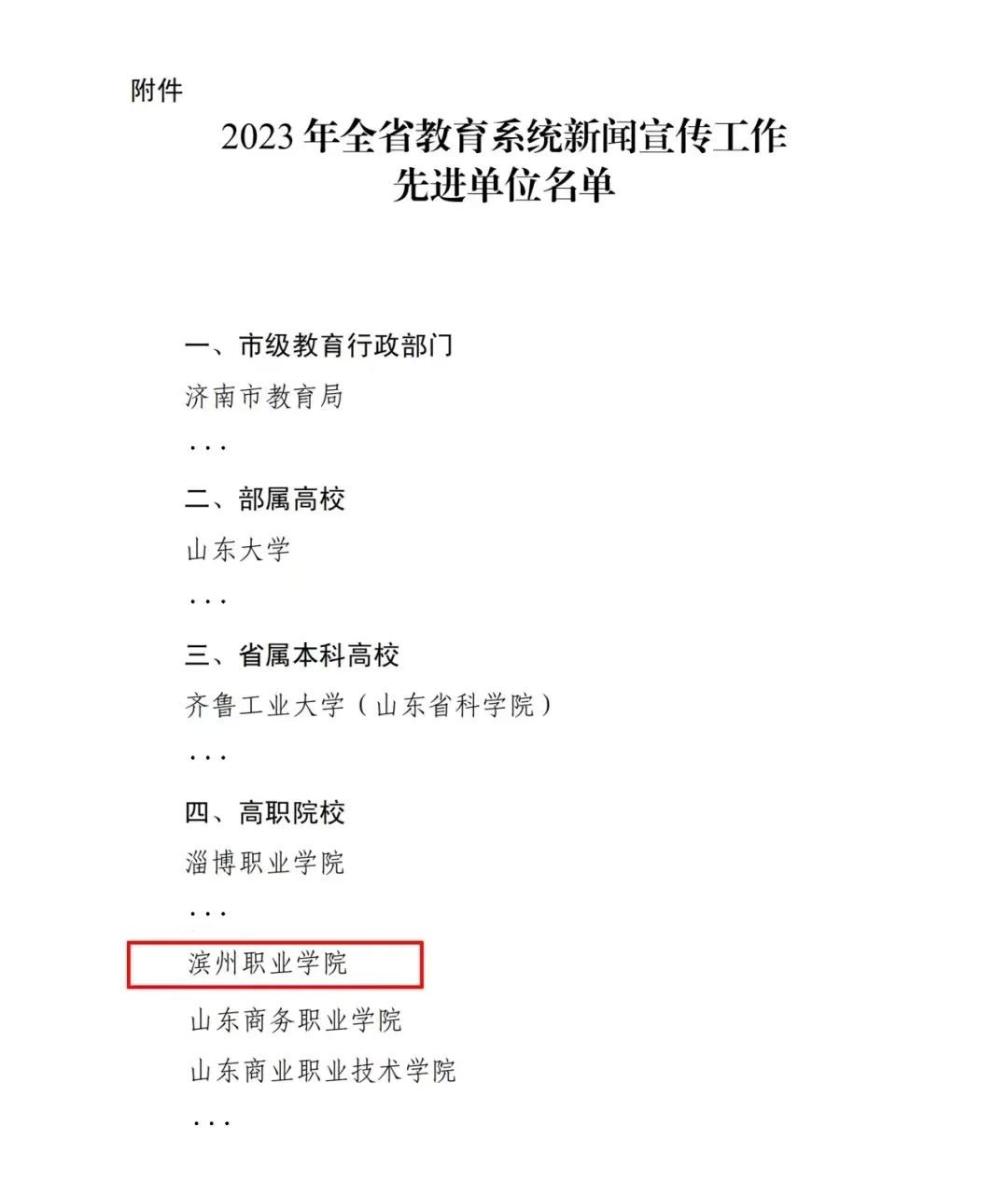 近日,山东省教育厅印发《关于表扬2023年全省教育系统新闻宣传工作先进单位的通报》,我校在多项指标中表现优异,获评“2023年山东教育系统新闻宣传工作先进单位”。