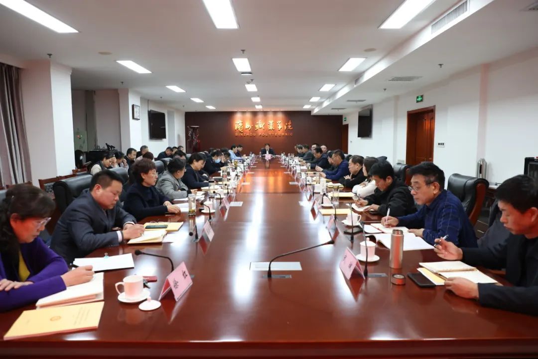 2月22日,滨州职业学院在培训中心召开基层党组织书记履行全面从严治党责任和抓基层党建工作述职评议会议。党委书记刘荩一主持会议并作总结讲话。党委副书记、院长申保忠,党委副书记范克志,党委委员、副院长宣永华,党委委员、滨州应用科技研究院院长胡洪涛,党委委员、副院长王进博,党委委员、纪委书记、监察专员吕海霞,党委委员、宣传部部长杨玉梅,党委委员、组织人事部部长李超出席会议。33个基层党组织的主要负责人参加会议并依次述职,分管领导对各基层党组织主要负责人的发言进行了点评。