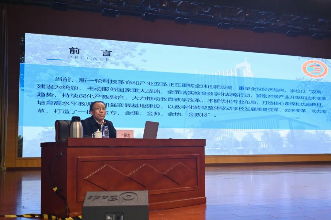 申保忠表示,学校主动服务国家重大战略,全面落实教育数字化战略行动,紧密对接产业升级和技术变革趋势,持续深化产教融合,大力推动教育教学改革,不断优化专业布局,打造核心课程和优质教材,培育高水平教师,加强实践基地建设,以数字化转型整体驱动学校发展质量变革、效率变革、动力变革。