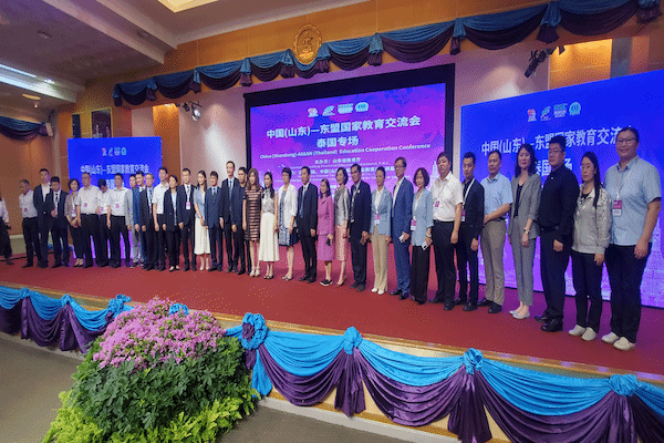 在泰国博仁大学举行展会与交流会泰国专场活动。代表团成员与泰国博仁大学院长Dr. Darika Latthaphiphat、中文国际交流学院院长助理陈鹏妃等人深入交流,就跨国访问、教师学历提升和游学等主要内容达成合作意向。