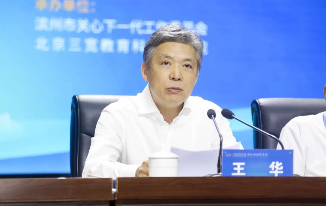 王华致辞指出,近年来,山东省坚持以习近平新时代中国特色社会主义思想为指导,始终把家庭教育放在全省教育工作的重要位置,真抓实干、守正创新,“五老”工作室建设先行先试,关心下一代工作列入各级党委政府重要议事日程,家庭家教家风建设经验全国推广,山东省作为全国仅有的两个省级家庭教育实验区之一,为探索全国家庭教育创新新篇章添上了浓墨重彩的一笔,描绘出了一幅齐鲁家校社协同育人实践的生动画卷。做好新时代家庭教育工作,我们将持续在促融合上下功夫,切实发挥好家长主体作用、学校主导作用以及社会支持作用,大力推进“家校社共育”实践区项目建设,真正构建起政府、家庭、学校、社会协同育人新格局,实现家庭教育在育人价值和社会价值的有效统一。我们将持续在抓创新上下功夫,创新工作运行机制,创优资源平台建设,完善覆盖城乡的家庭教育体系,打造一批特色鲜明的家庭教育品牌,共同推动形成爱国爱家、相亲相爱、向上向善、共建共享的社会主义家庭文明新局面。我们将持续在优服务上下功夫,聚焦构建学校、家庭、社会相结合的育人格局,积极统筹力量,壮大专业队伍,拓展工作阵地,持续开展“五老”关爱行动、文明家庭创建等活动,帮助孩子树立正确的世界观、人生观、价值观,扣好人生第一粒扣子。希望滨州市以举办家长大会为契机,持续深化“党委政府主导、教育部门主抓、专家团队引领、教师示范先行、家长全员参与”的家校社共育“滨州模式”,先行先试先为、创新实干突破,从全域、全局、全方位的高度推进区域家庭教育工作高质量发展,全力打造全国“家校社共育和家长教育”新高地。