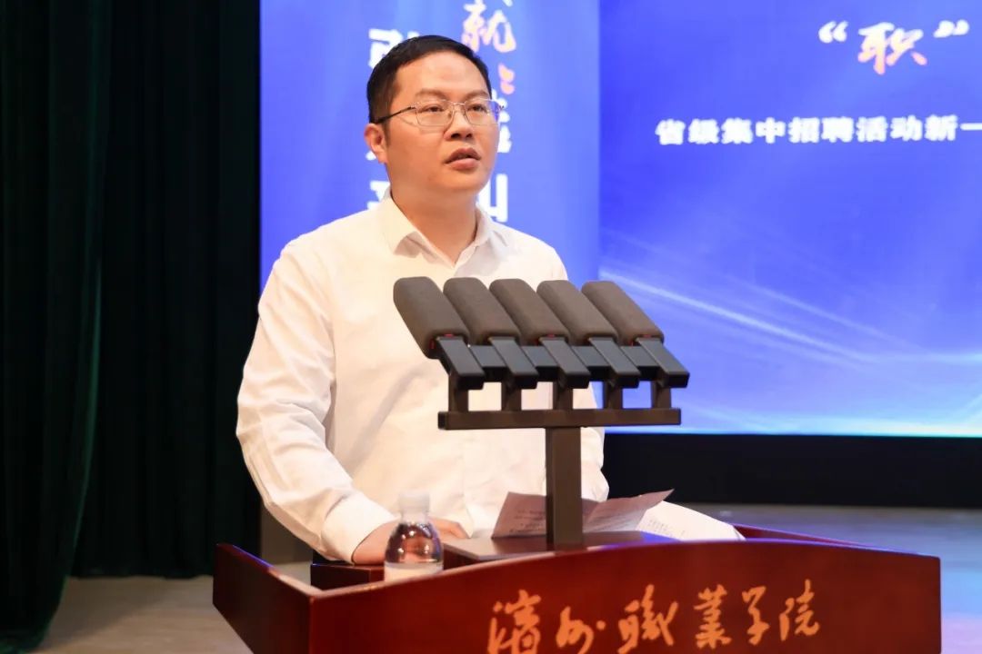 刘荩一对各位来宾的到来表示欢迎和感谢。他指出,学校始终坚持“服务、融入、引领”的办学理念和“开门开放、多元多样”的办学模式,努力打造职业教育样板,为区域经济社会发展培养高质量技术技能人才。他希望学生要抓住宝贵的就业窗口期,树立正确的劳动观、择业观和就业观,更多地选择在鲁就业、留滨就业。希望用人单位抢抓招聘黄金期,提供充足优质的岗位,如愿以偿地招到所需人才。学校将与社会各界进一步创新合作方式、拓宽合作领域,共同培养高素质技术技能人才。