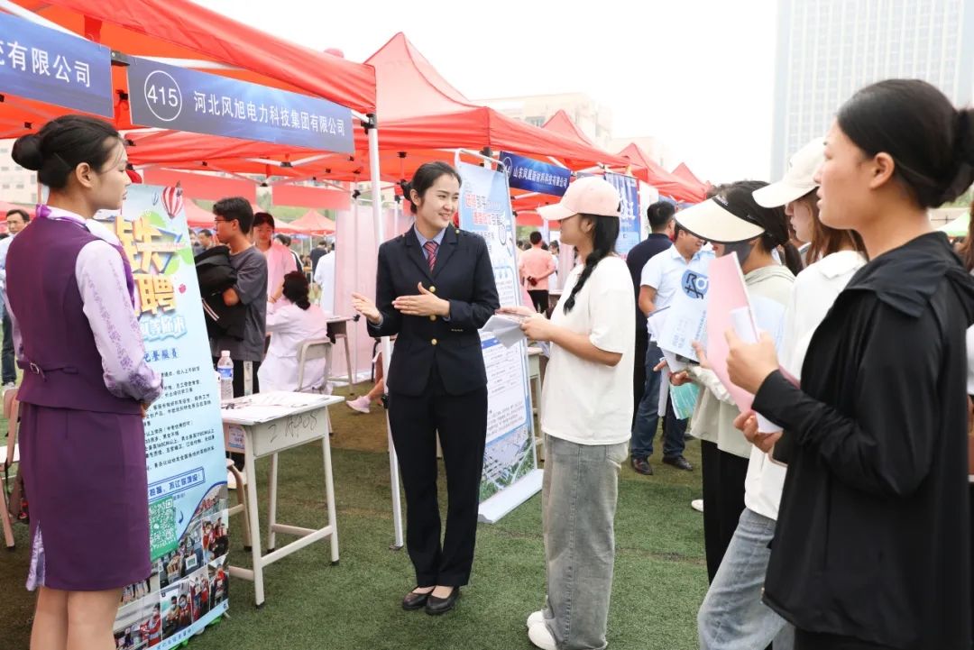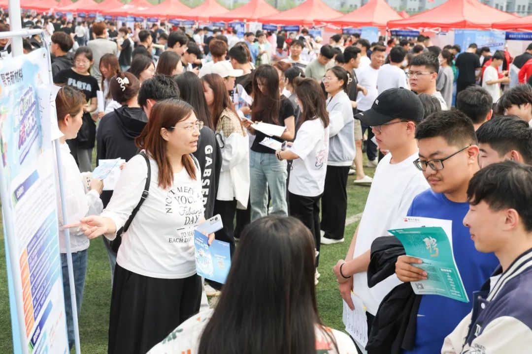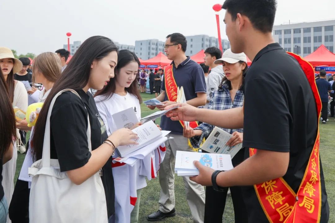 招聘会设立就业指导服务专区为毕业生提供就业政策咨询。整个招聘现场按照模块化展位布置,投接简历、洽谈对接、签署意向书,各个环节井然有序,有条不紊。