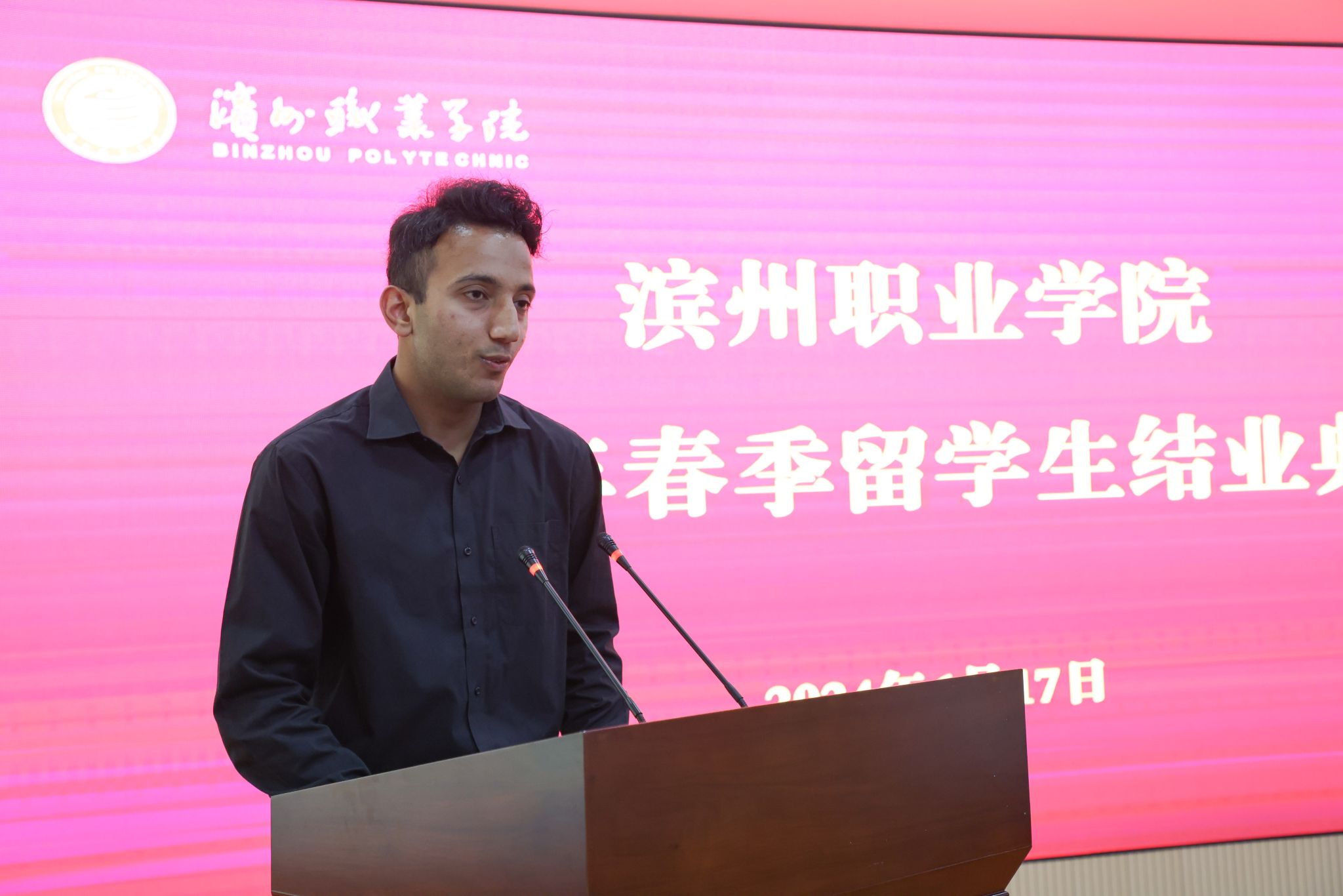 活动期间,来自巴基斯坦的学生李如一发表结业感言。他深情地回顾了在滨州职业学院的学习和生活经历,表达了对学校、老师和同学们的感激之情,同时也对未来的学习和生活充满了期待和憧憬。