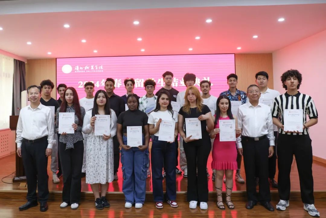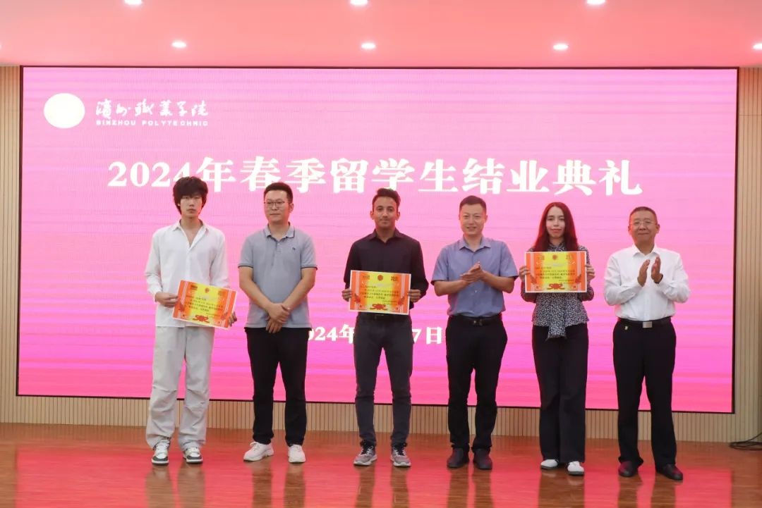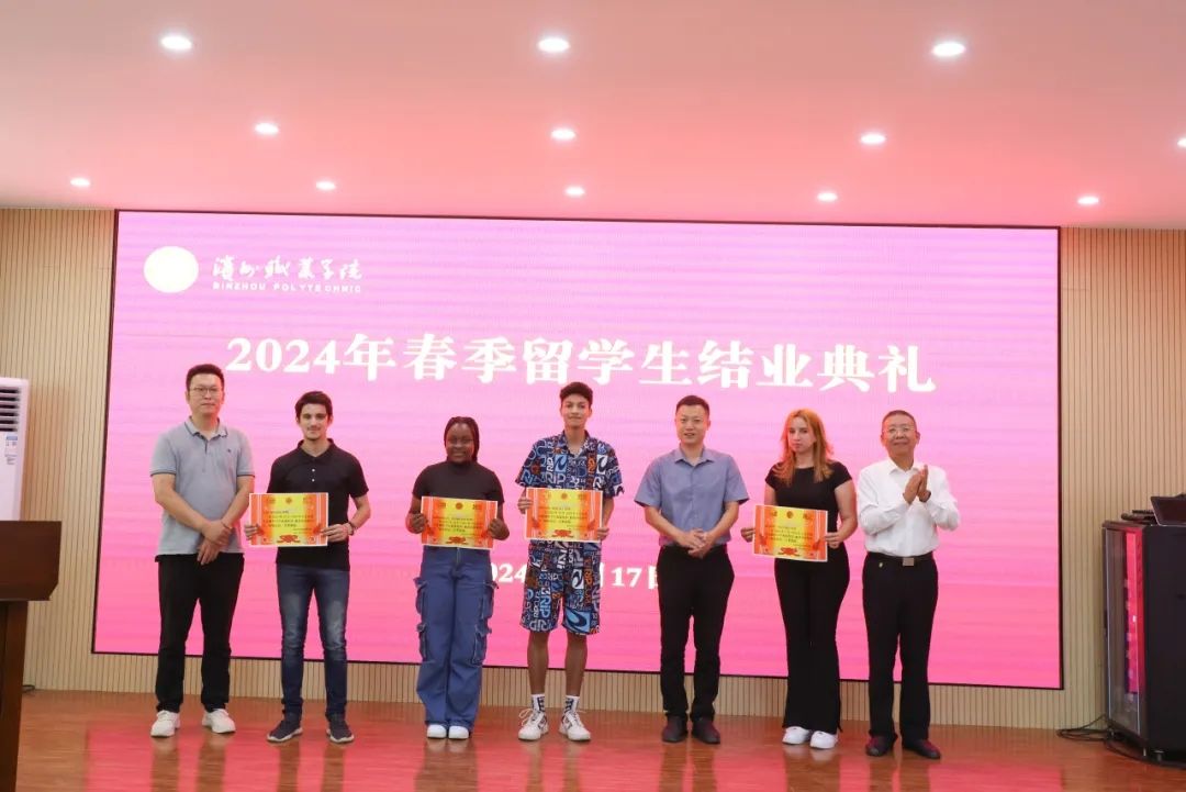 6月17日,滨州职业学院举行2024春季学期留学生结业典礼,党委书记刘荩一,党委委员、滨州应用科技研究院院长胡洪涛为21名留学生颁发结业证书。